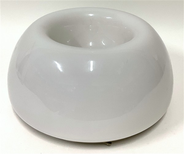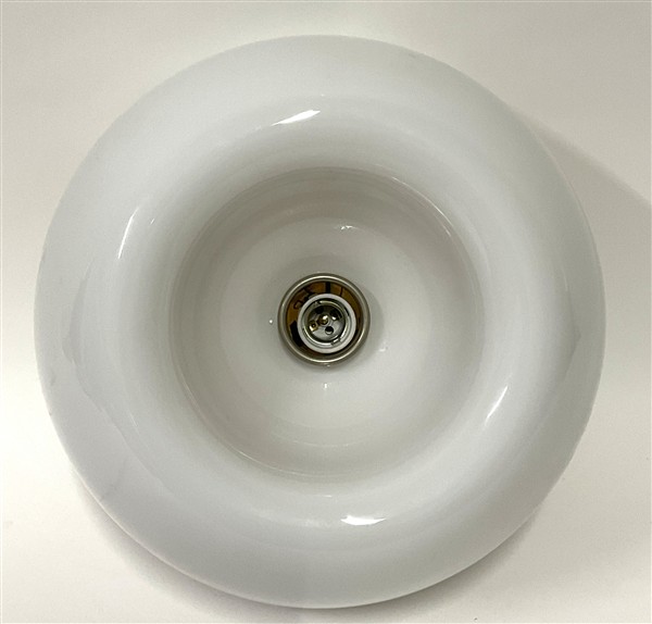 Plafoniera modello "Velella". Produzione Flos, Milano, 1967. Vetro incamiciato lattimo con struttura in metallo nichelato e verniciato. (d cm 41)
