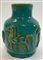 Vaso in terracotta smaltata in celeste e verde sotto vetrina decorata con cavalli a rilievo. Anni '40/'50. Firmata sotto la base. (h cm 16) (difetti)