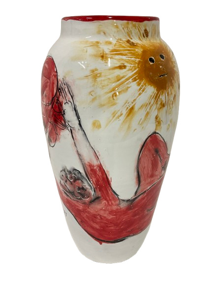 Ceramiche San Giorgio "La caduta di Icaro" Grande vaso in ceramica smaltata in n