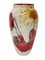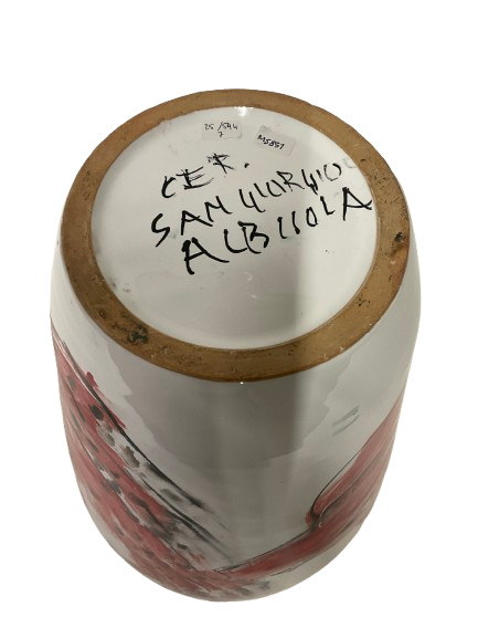Grande vaso in ceramica smaltata in nero, giallo, rosso e verde su fondo bianco sotto vetrina. Albisola. Firmato alla base. (h cm 42,5)
