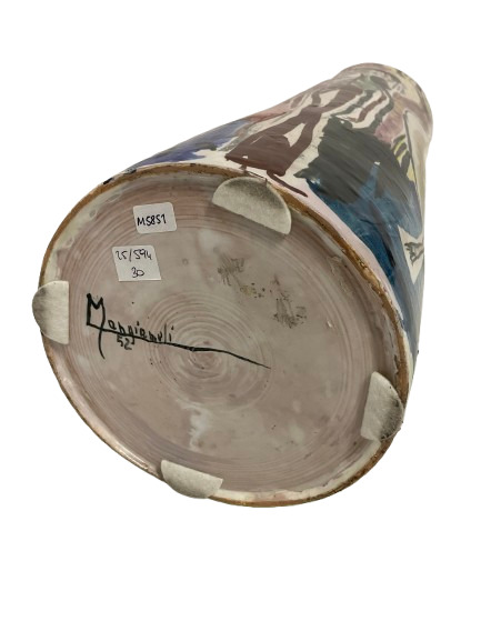 Mangiameli Grande vaso troncoconico in ceramica smaltata in policromia sotto vet