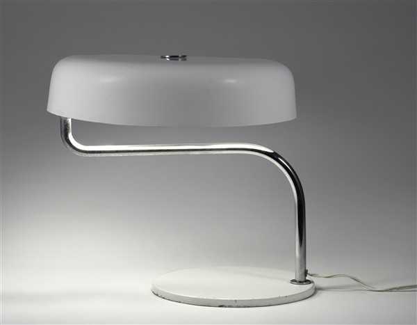 Lotto 1776 | Lampada da tavolo con paralume in metallo laccato bianco e metallo cromato. Ita