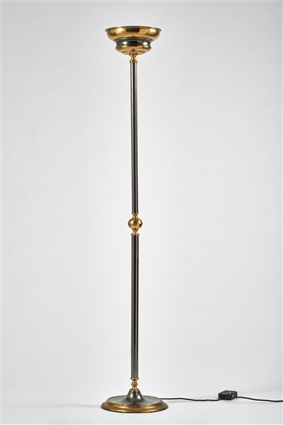 Lampada da terra in metallo brunito e ottone. Italia, anni '80/'90. (h cm 178,5