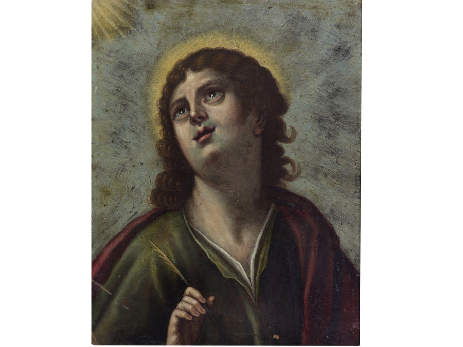 Scuola italiana (XVIII secolo) San Luca olio su rame 25x19 cm