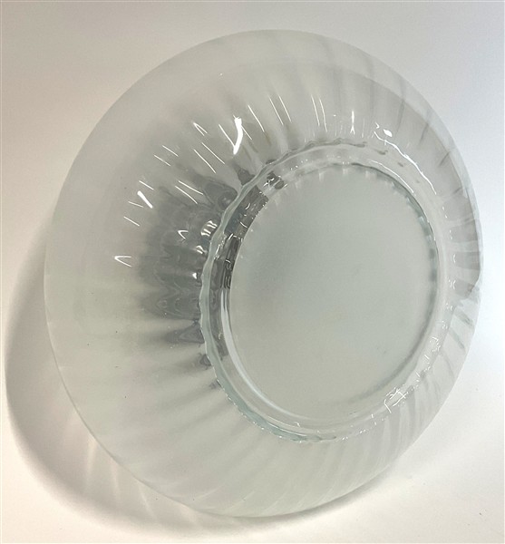 Plafoniera in vetro soffiato opalescente costolato. Murano, anni '70. (d cm 36)