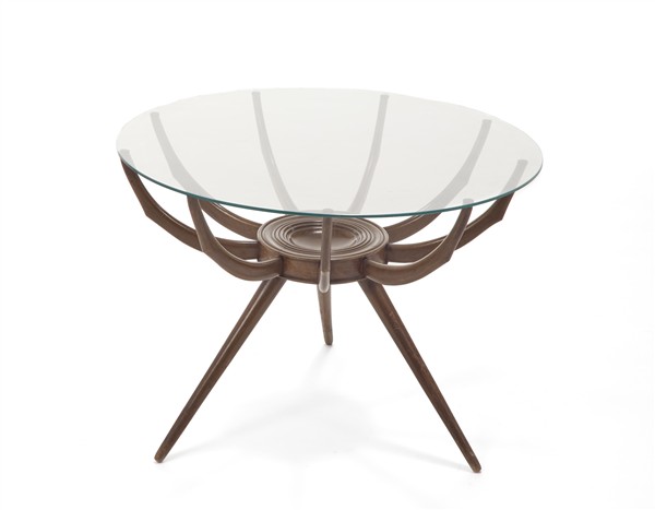 * Tavolino in legno massello con piano circolare in vetro. Italia, anni '50. (h