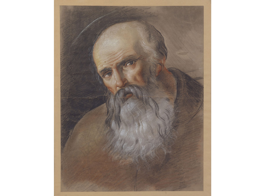 Scuola lombarda (XVIII secolo) Testa di santo tecnica mista su carta 47x36,5 cm