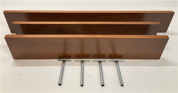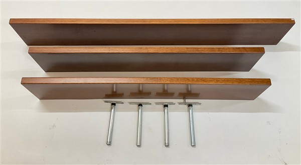 Lotto di tre mensole in legno impiallacciato tamburato. Italia, anni '70/'80. (cm max 180x28,5) (lievi difetti, piccole mancanze e staffe di fissaggio non congrue)