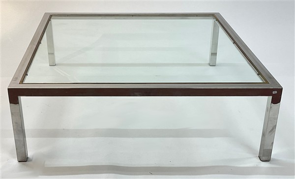 Lotto composto da due tavoli da caffè in metallo cromato e ottone con piano in