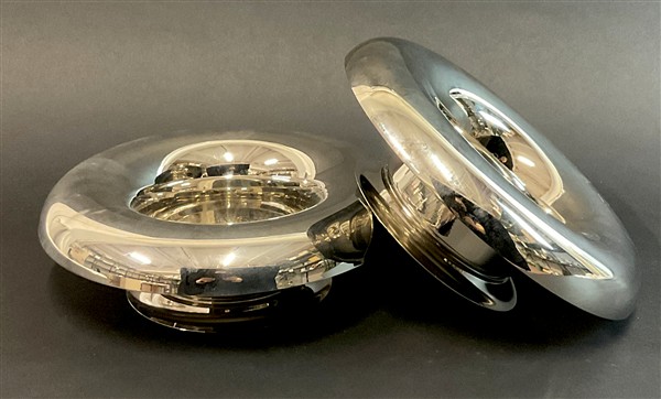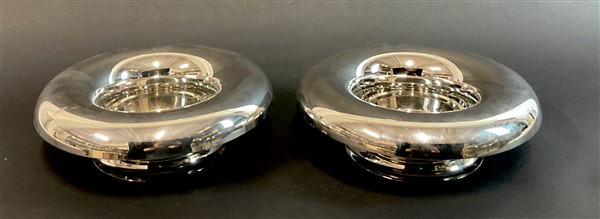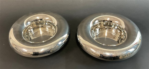 Lotto 1861 | Lotto di due centrotavola in acciaio Aisi. Italia, anni '70. (d cm 28) Proveni