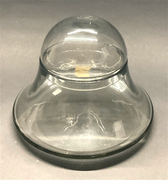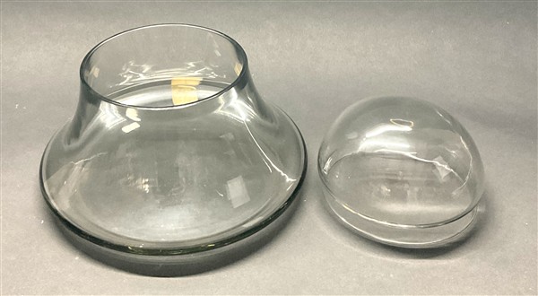 Compostiera in vetro soffiato fumé trasparente. Murano, anni '60/'70. Recante etichetta cartacea della manifattura. (h cm 17)