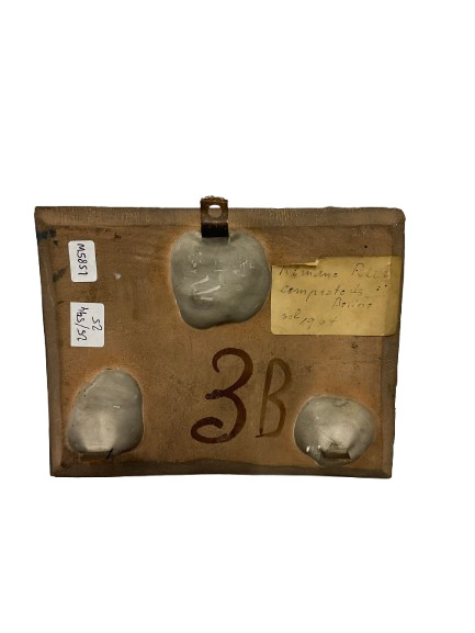 Formella in ceramica smaltata in verde, blu, rosa e bianco sotto vetrina. Italia, 1964ca. Firmata in basso a sinistra. (cm 14,5x11,5)