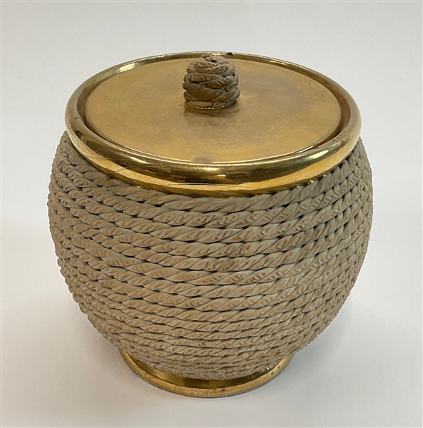 Zullian R. Contenitore con coperchio in ceramica con decorazione a corda e dorat