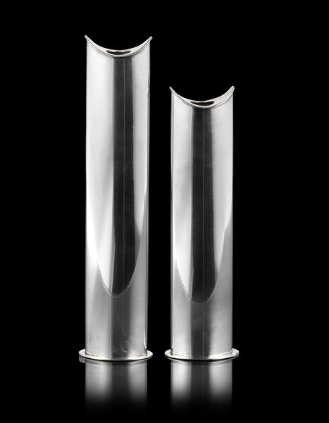 Lino Sabattini Due vasi soliflore modello "Giselle". Bregnano, anni '70. Metallo