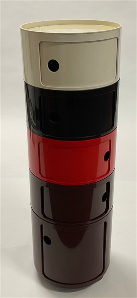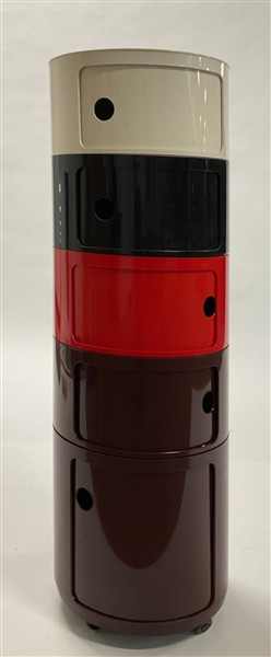 Mobile contenitore. Produzione Kartell, Milano, anni '90. Abs marrone, nero, rosso, bianco. In due scatole originali. (h cm 128; d cm 42)