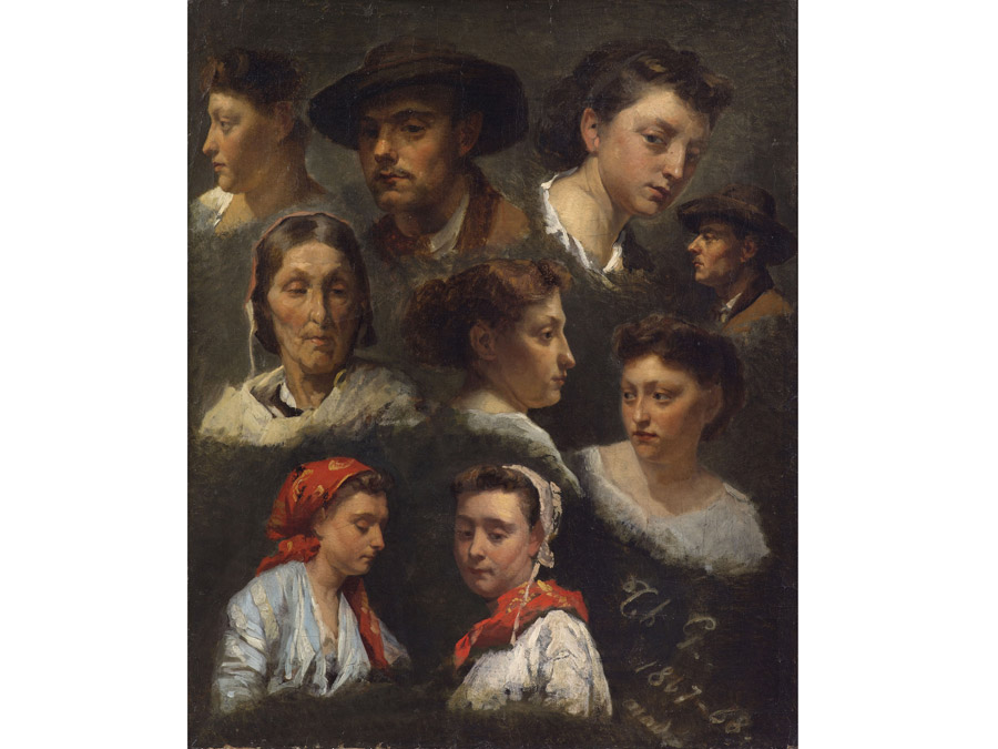 Theodore Gerard (1829-1902) Composizione con volti olio su tela 54x44 cm