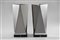 Due portaombrelli. Produzione Robots, Milano, anni '70. Metallo laccato nero e acciaio. In scatola originale. (cm 26x49,5)