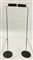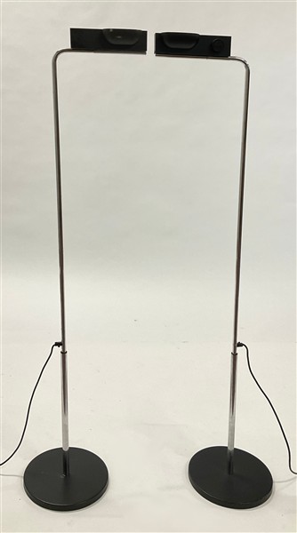 Coppia di lampade da terra modello "Camera terra 500". Artemide, Milano, 1976. Metallo cromato e laccato nero. Recante etichetta del produttore sotto la base. (h max cm 194) (difetti e mancanze)