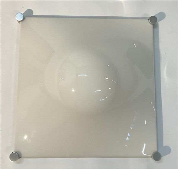 Lampada a plafone/parete modello "Bolla". Produzione Martinelli Luce, Italia, anni '70. Metallo verniciato bianco, alluminio tornito e metacrilato opalino. Recante etichetta cartacea all'interno. (cm 52x52) (difetti)