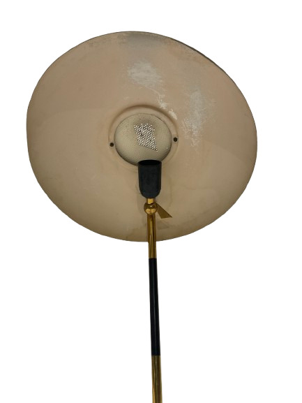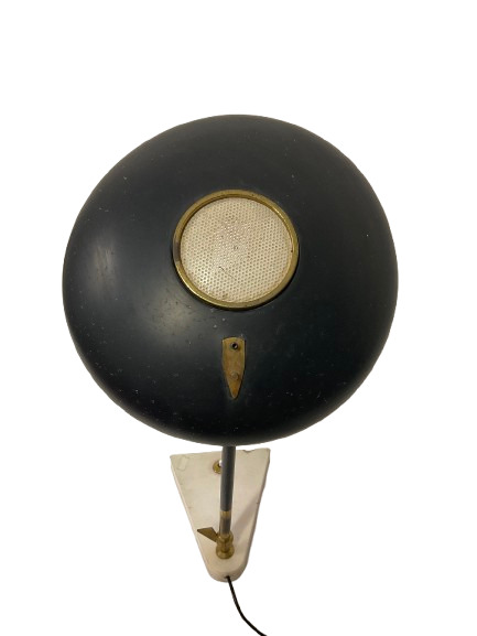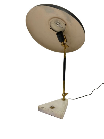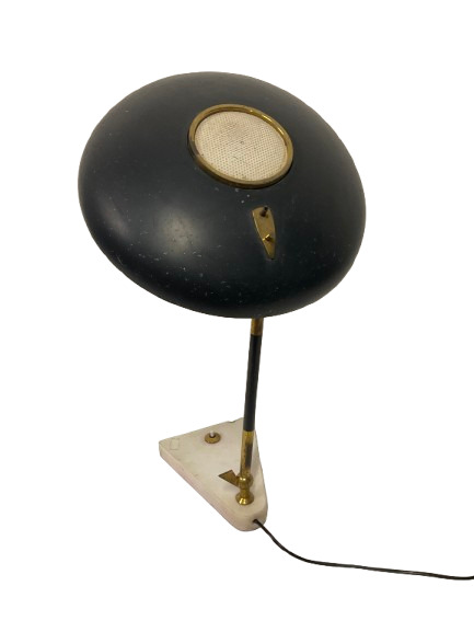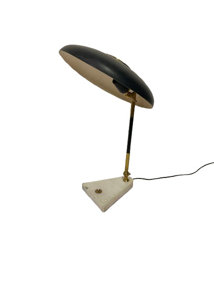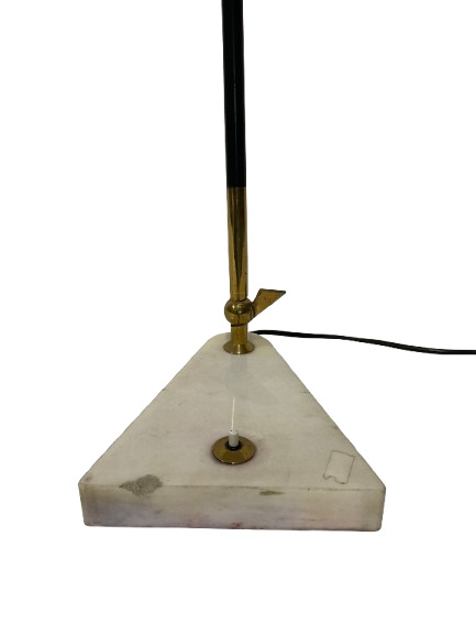 Lampada da tavolo. Produzione Lumi, Milano, anni '60. Struttura in ottone e alluminio laccato nero, base in marmo bianco. (h cm 50) (difetti e mancanze)
