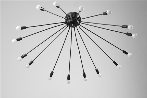 Lampada a plafone a raggiera con sedici bracci in ottone. Italia, anni '40. (d
