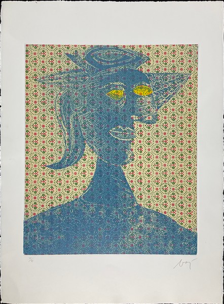 Enrico Baj "Blue period" 1970 acquaforte a colori cm 70,5x50,5 firmato e numerat