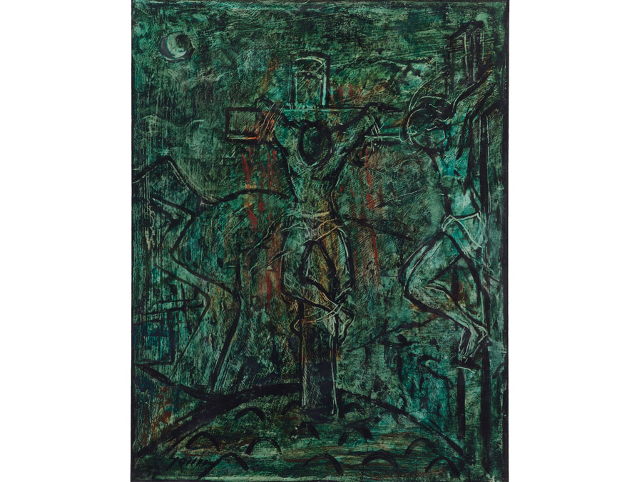 Samos Koler (1909-1988) Cristo Crocifisso Smalto su cartone telato 45x34,5 cm