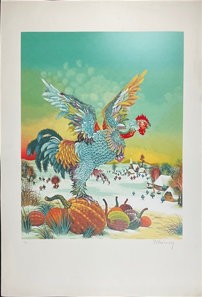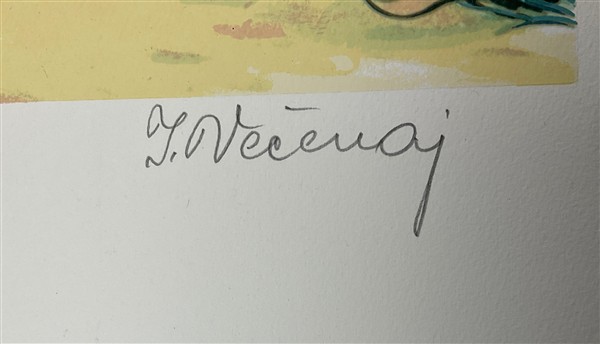 Lotto composto da quattro litografie a colori di pittori Naif, di soggetti e misure diverse (misura max cm 100x70) tra cui Vecenay e Generalic