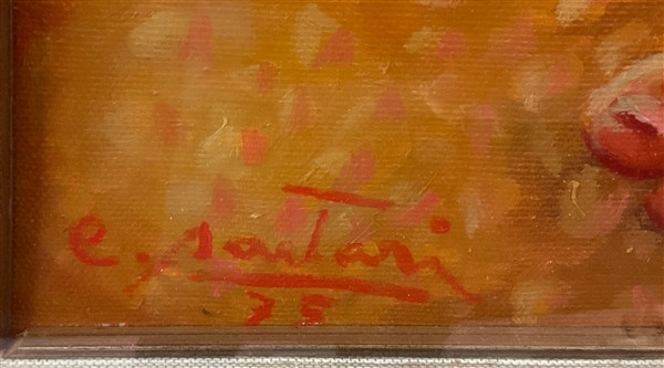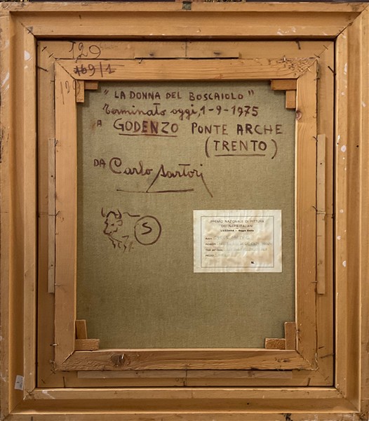 Carlo Sartori "La donna del boscaiolo" 1975 olio su tela cm 60x50 firmato e data