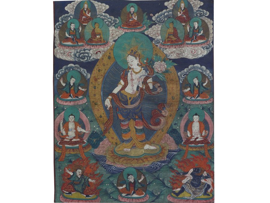 Tanka (XIX secolo) Tanka tessuto dipinto 30.2x24.2 cm