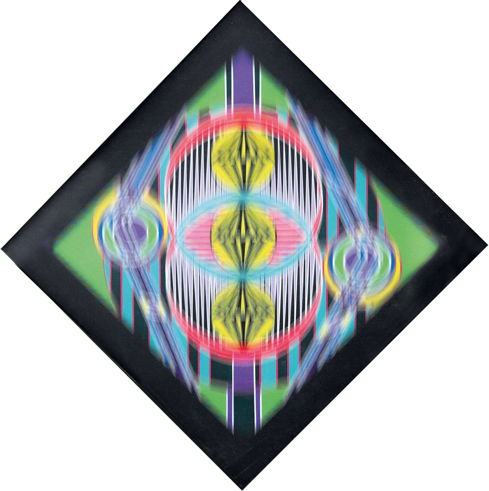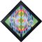 tecnica mista su cartoncino romboidale con copertura in plexiglass zigrinato a linee orizzontali cm. 92x92 (lato cm. 50), opera non firmata, etichetta e timbro dell'artista al retro, dichiarazione d'autenticità e timbro dell'artista su certificato della Anti: galleria d'arte contemporanea (Mestre-VE) allegato.