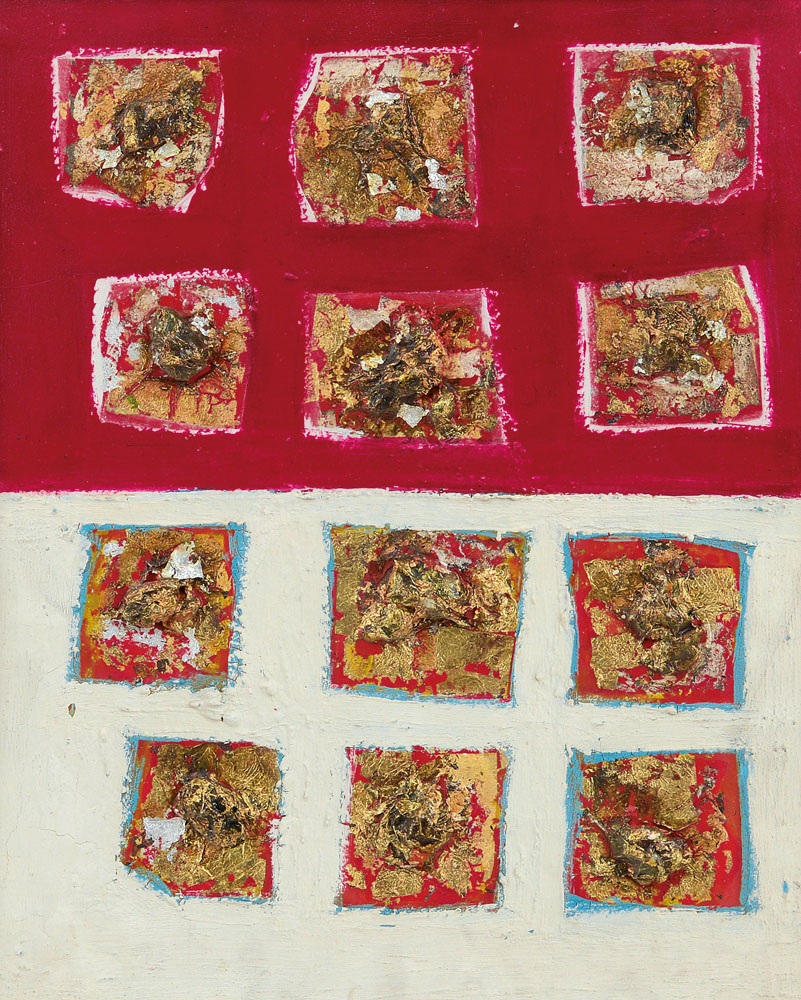 tecnica mista e foglia oro su tela cm. 49,5x39, firma, anno, timbro dello Studio Remo Bianco ed autentica a cura di Lyda Bianchi al retro.