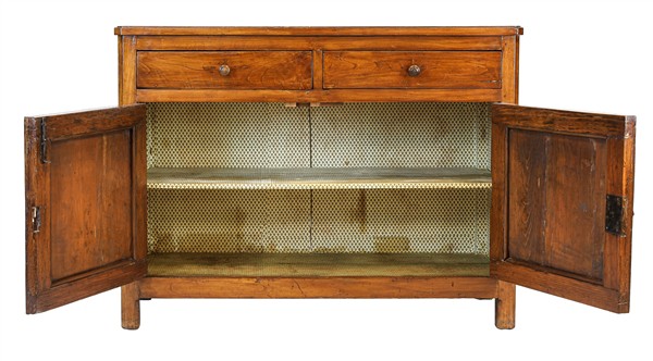 Credenza in noce a due sportelli e due cassetti sottopiano. Secolo XX (cm 119x8