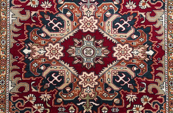 Tappeto Caucaso, recente manifattura. Decoro Kasim Ushag con medaglione su fondo rubino (cm 176x116) (difetti)