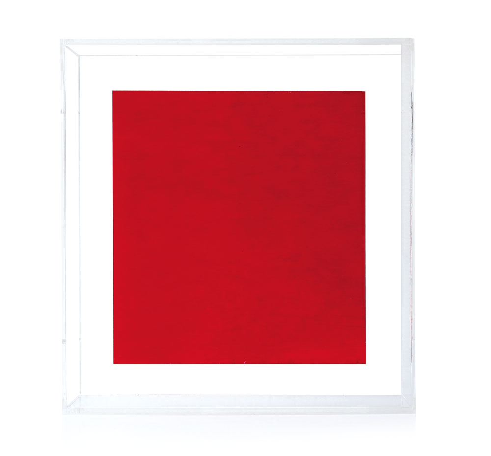 pigmento rosso su pietra cm. 30,5x27,4; firma, anno e tecnica su etichetta al retro, dichiarazione d'autenticità dell'artista su foglio A4 e su certificato di autenticità della Orler Gallerie d'Arte (Favaro V.to-VE) allegati, entro teca in plexiglass.