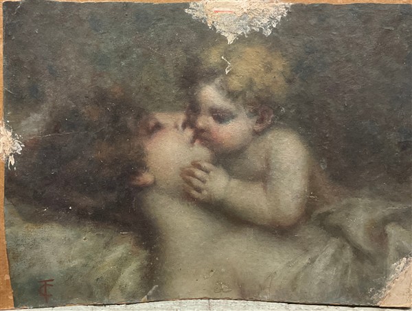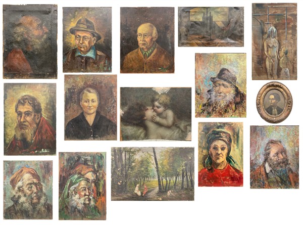 Cartone contenente numerosi dipinti di soggetti, tecniche e misure differenti
