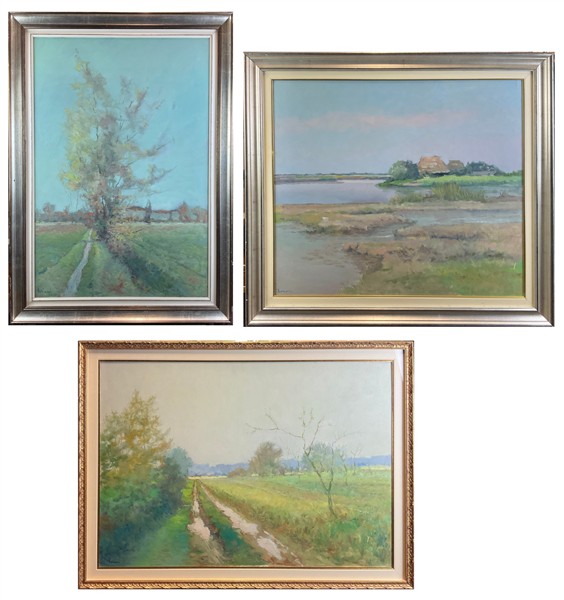 Tre dipinti raffiguranti "Paesaggi" oli su diversi supporti (cm max 70x100)