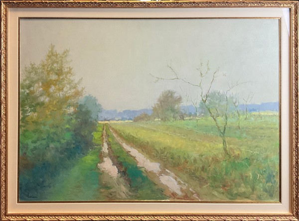 Federico Boriani Tre dipinti raffiguranti "Paesaggi" oli su diversi supporti (cm