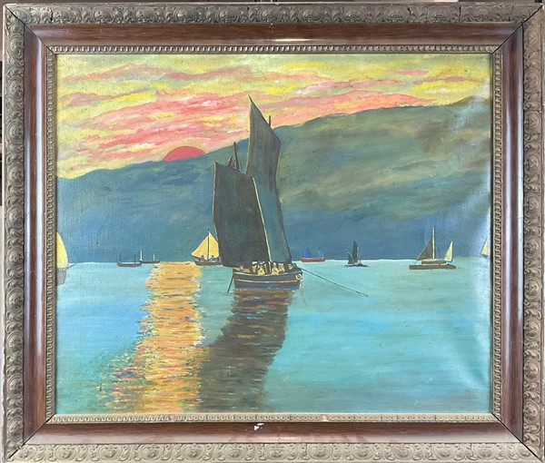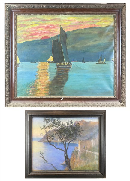Lotto composto da un olio su tela e un pastello su carta raffiguranti "Marine", di diversi autori e misure (cm max 33x46)