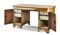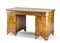 Scrivania da centro lastronata e filettata in legni vari con fronte a due sport