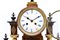 Pendola a portico con cassa in legno, colonnine in alabastro e inserti in bronzo. Quadrante in smalto bianco a numeri romani, movimento a due treni con suoneria delle ore e mezze su gong. Austria, secondo quarto del secolo XIX (h. cm 56) (difetti, rotture e piccole mancanze)