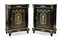 Coppia di credenzini in legno ebanizzato e filettato in ottone, fronte ad un'an