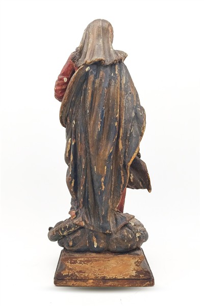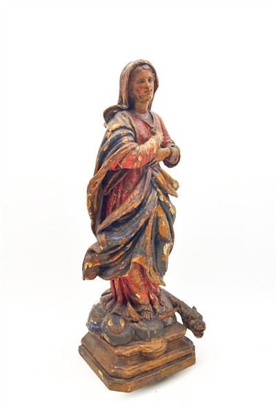 Arte del secolo secolo XVIII. Immacolata Concezione, legno intagliato, dorato e dipinto in policromia (h cm 48) (difetti e restauri)