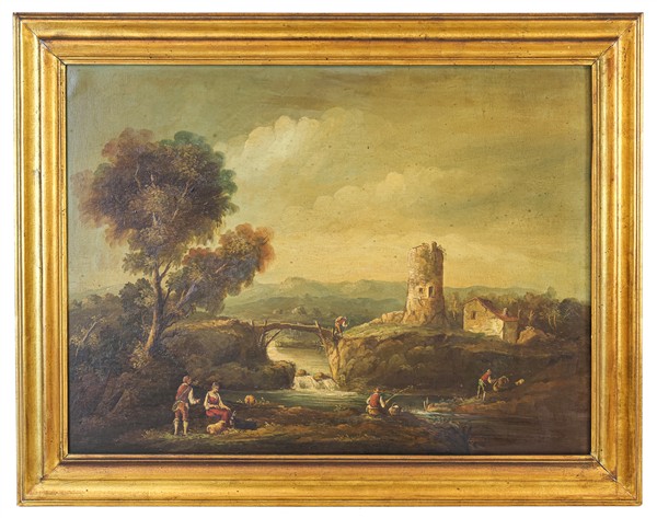 Da un modello del secolo XVIII "Paesaggio con personaggi" olio su tela (cm 60x