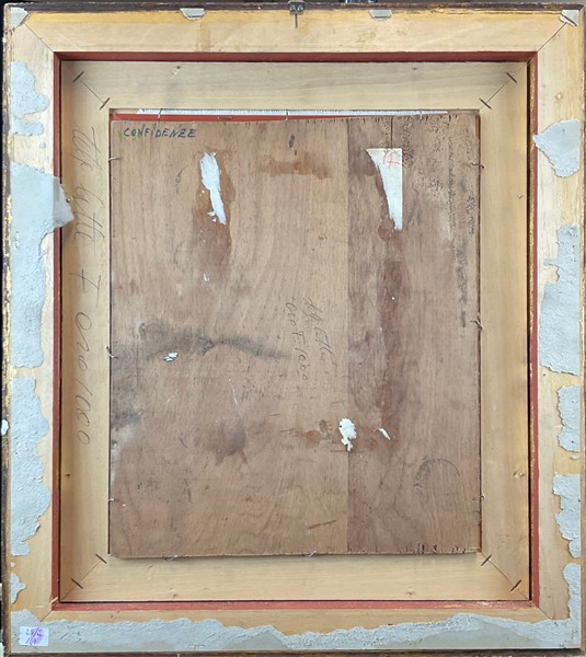 Giuseppe Sidoli "Confidenze" olio su compensato (cm 34,5x29) firmato in basso a
