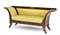 Divano in noce con decori ad intarsio in ottone ad animali fantastici e volute
