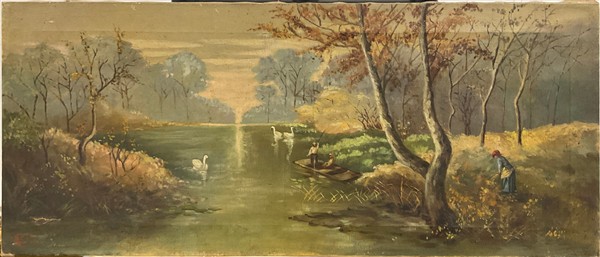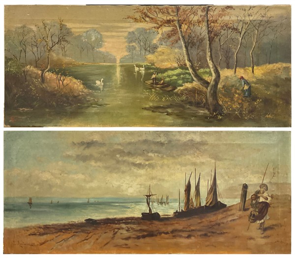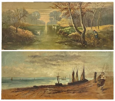 E. Mortara "Coppia di Pesaggi" olio su tela (cm 34x80) firmati in basso a sin
