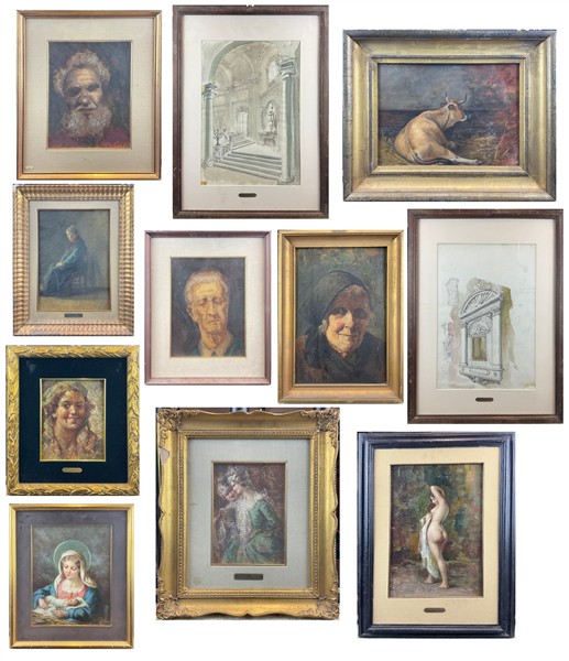 Lotto composto da numerosi dipinti e tecniche miste, di vari soggetti e misure