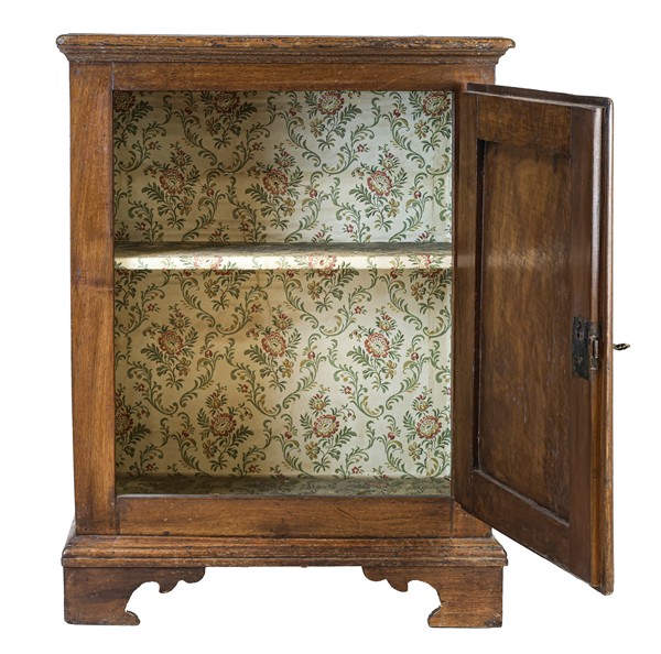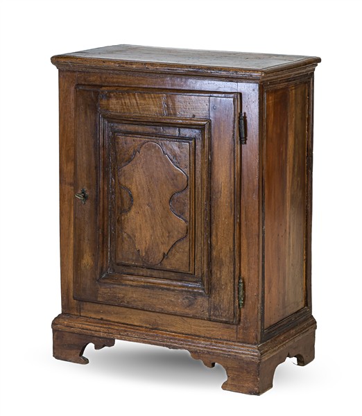 Stipeto in legno ad un'anta pannellata con piedi a mensola (cm 70x92x40) (difetti)