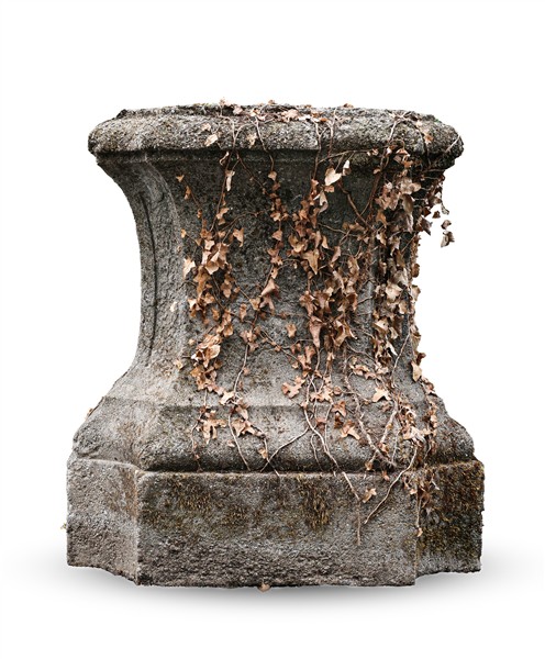 Grande basamento per statua da giardino in calcestruzzo con angoli smussati e convesso nella parte centrale. Secolo XIX (cm 90x100x93) (difetti)
